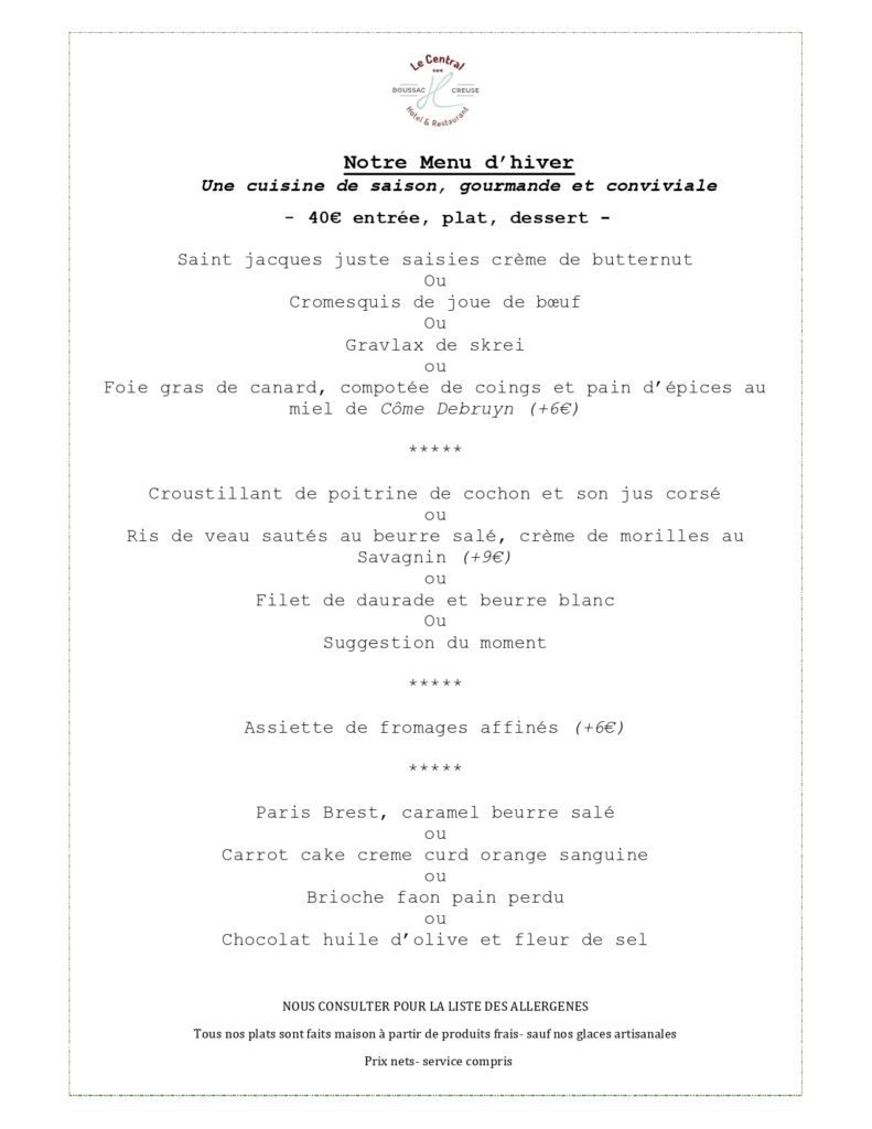 Chef cuisinier du Restaurant Le Central à Boussac